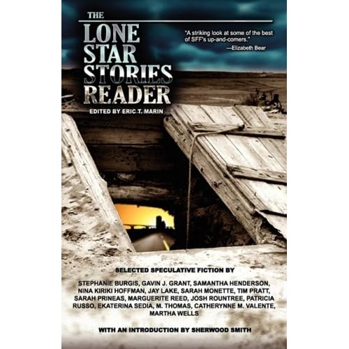 Upon opening the first few pages of this anthology, that first thing that assaults me is the layout. The Lone Star Stories Reader, while functional, looks like an amateurish print-on-demand book: the vertical margins are approaching the borders, the header text is too light, and the spacing between scene breaks seem wrong. There are images above the title of each story appearing almost like a watermark but they honestly don't do anything for the piece. Thankfully, the actual content is worthy of praise and once one immerses themselves in the text, all these layout problems disappear although the occasional lack of indention can be jarring.When I first encountered Lone Star Stories, much less this anthology, the first question that popped into my head what the hell was it and what kind of fiction did it published? The opening story, "Wolf Nights" by Martha Wells, immediately told me what kind of book this would be and it's a tone that remains consistent throughout the book. The Lone Star Stories Reader definitely has this fantastical Texan feel to it and in the opening story, this can be seen with the cliche of a wanderer visiting a small town with trouble not lurking too far. Of course what's different here is that there's a fantastical twist--in this case supposedly a werewolf--and it's an adventurous Western romp from there. Was I particularly attached to "Wolf Nights"? No, not really but I did find the writing competent and captured what would be the atmosphere of the rest of the anthology. The same comment goes for "The Great Conviction of Tina Inez" by M. Thomas which features an immigrant story that attempts to appeal to your emotions and includes some elements of magic realism.